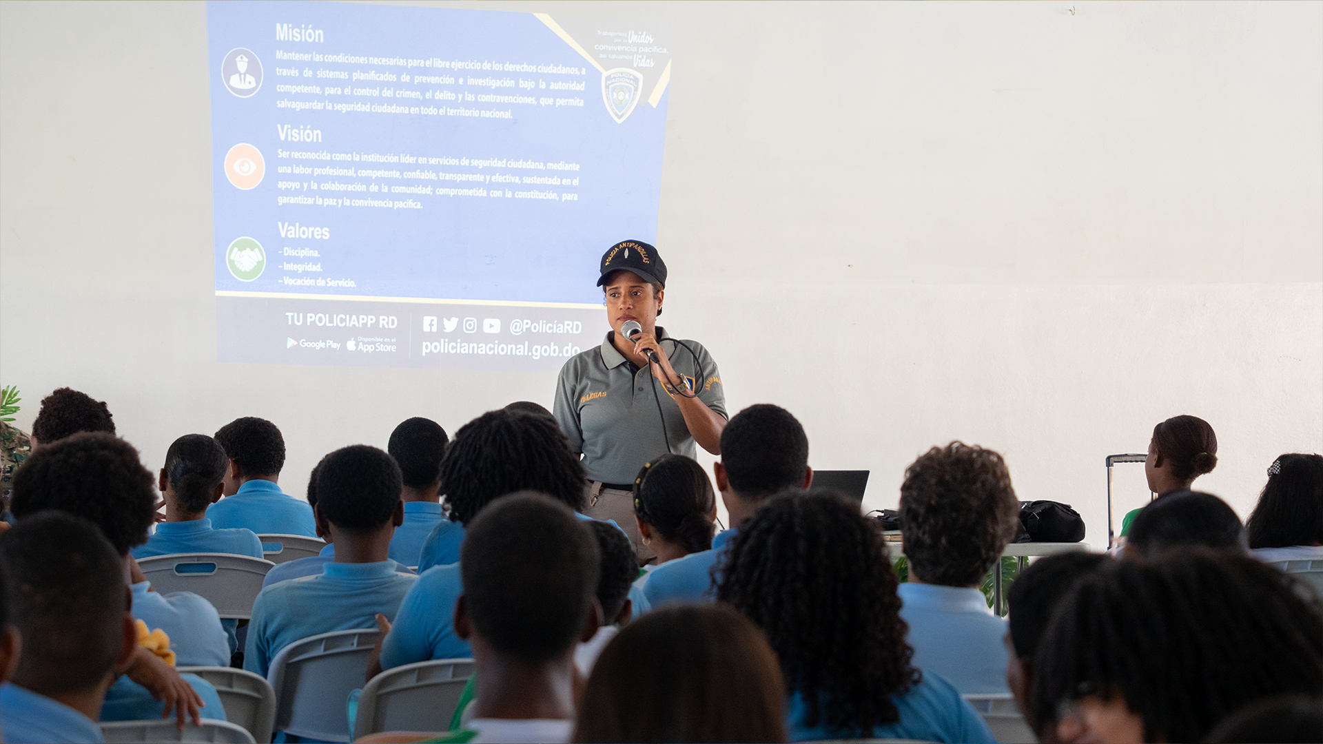 La Segundo Teniente Licda. Rosanny Villegas, representante de la Dirección Antipandillas, explicó que estas charlas buscan orientar a los adolescentes para que desarrollen la capacidad de identificar situaciones de riesgo y tomar decisiones responsables.