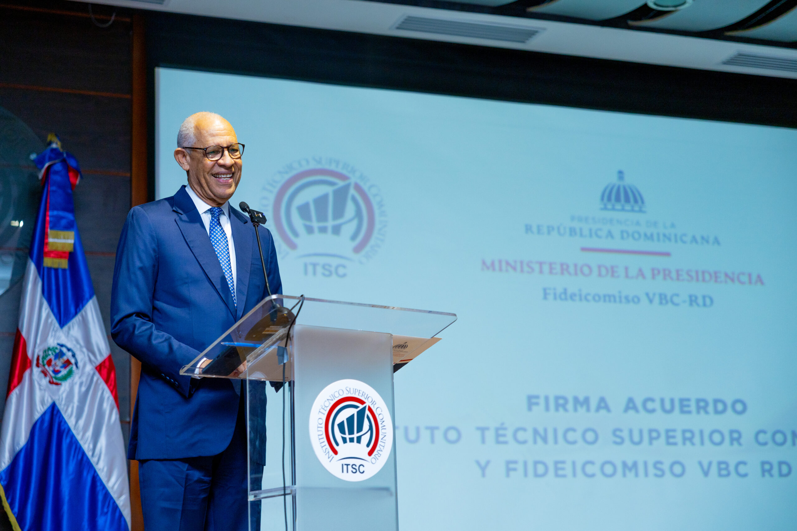El acuerdo fue firmado por el rector del ITSC, Dr. José Ramón Holguín Brito, y el director ejecutivo del Fideicomiso VBC-RD, Ing. Camel Curi Lora, en un acto realizado en las instalaciones del ITSC, con la presencia de autoridades académicas, directivos del fideicomiso, profesores y estudiantes de Ciudad Juan Bosch.